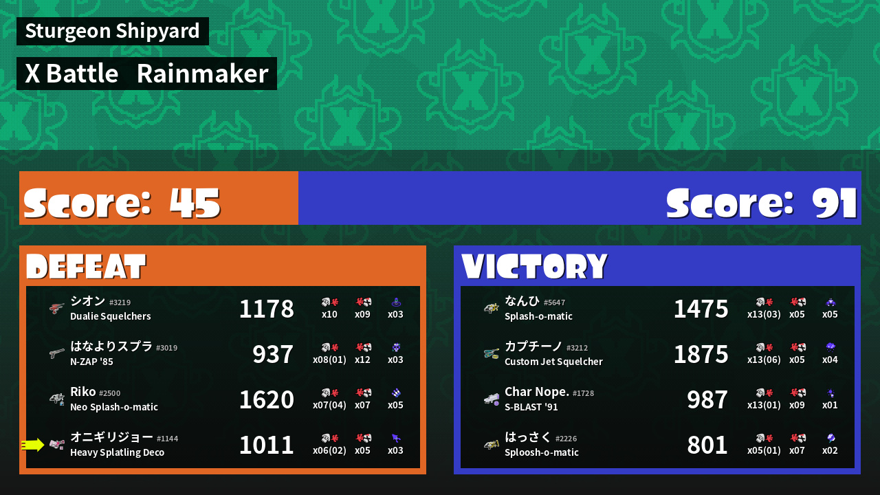| Mode | Rainmaker - X Battle | ||