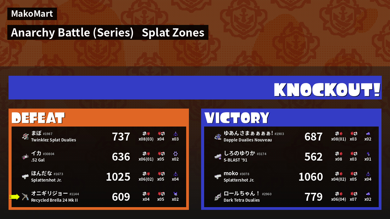 Results of まこりーた's Battle