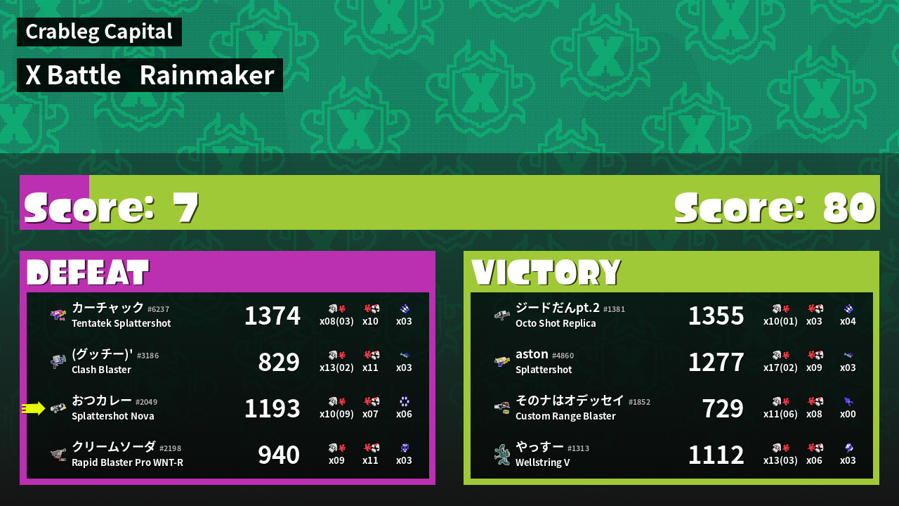 | Weapon | Splattershot Nova ( Point Sensor / Killer Wail 5.1) |