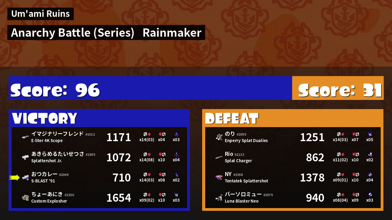 Results of まこりーた's Battle