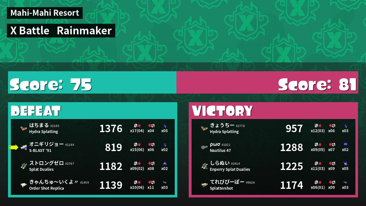 Results of まこりーた's Battle