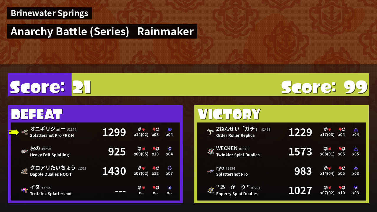 Name | Weapon | Inked | ![]() |