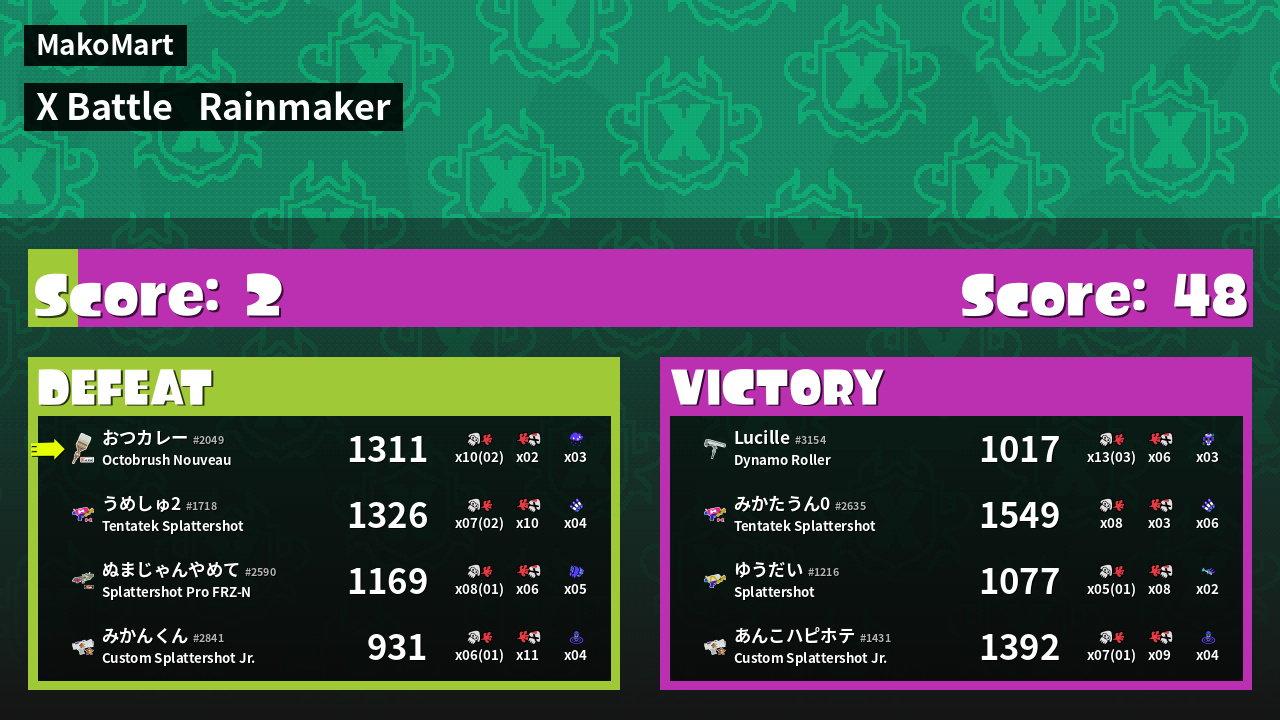 | Mode | Rainmaker - X Battle |