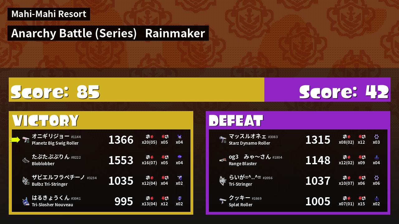 Results of まこりーた's Battle