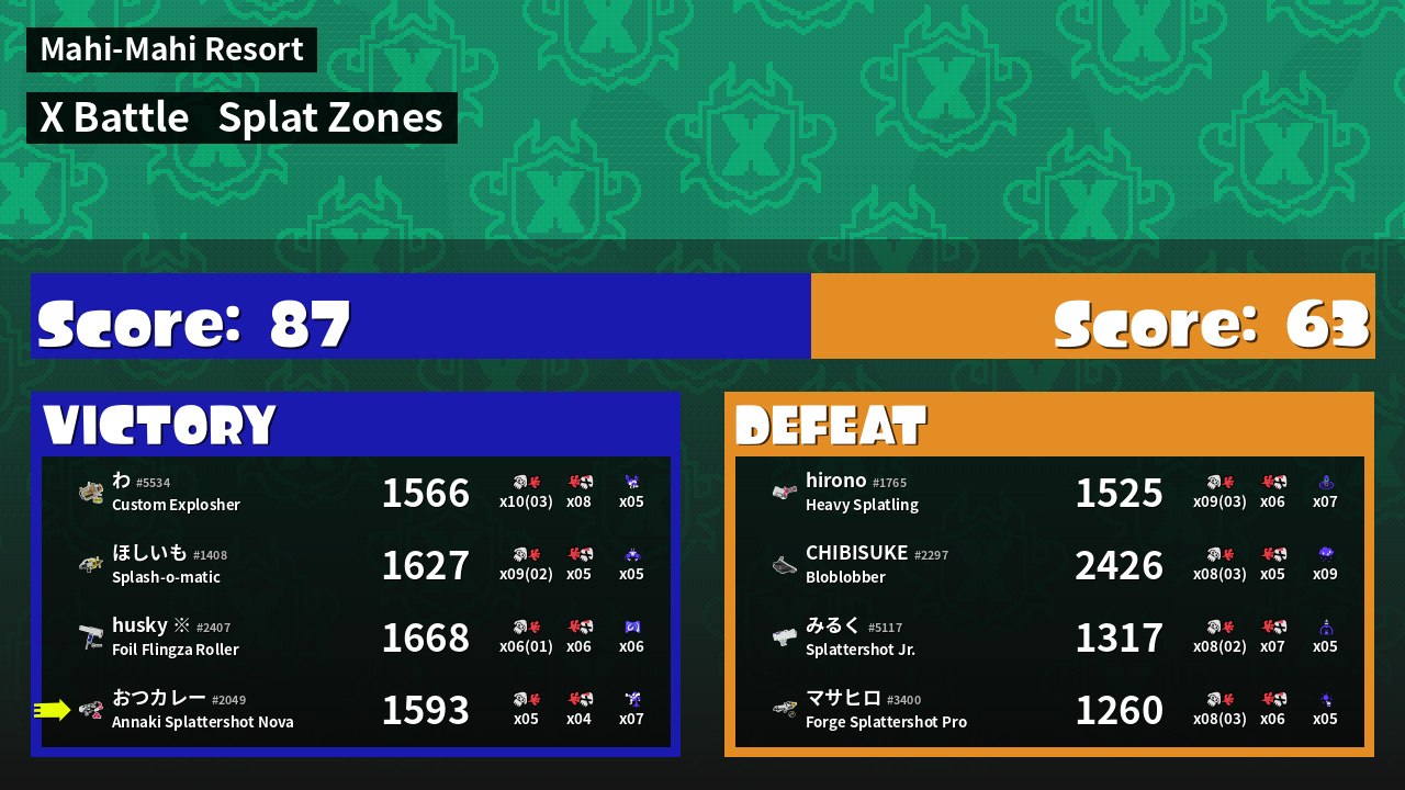 | Mode | Splat Zones - X Battle |