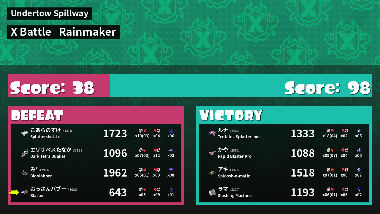| Medals | #1 Popular Target #1 Rainmaker Stopper #2 Enemy Splatter | ||
