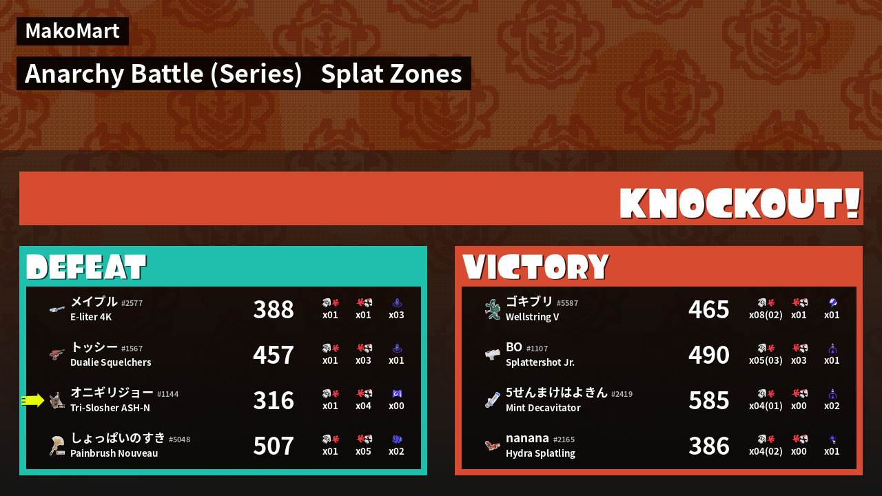 Results of まこりーた's Battle