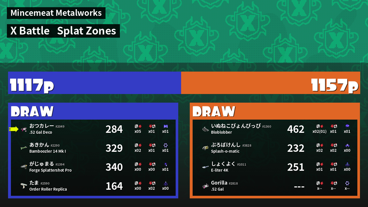 | Weapon | .52 Gal Deco ( Curling Bomb / Splattercolor Screen) |