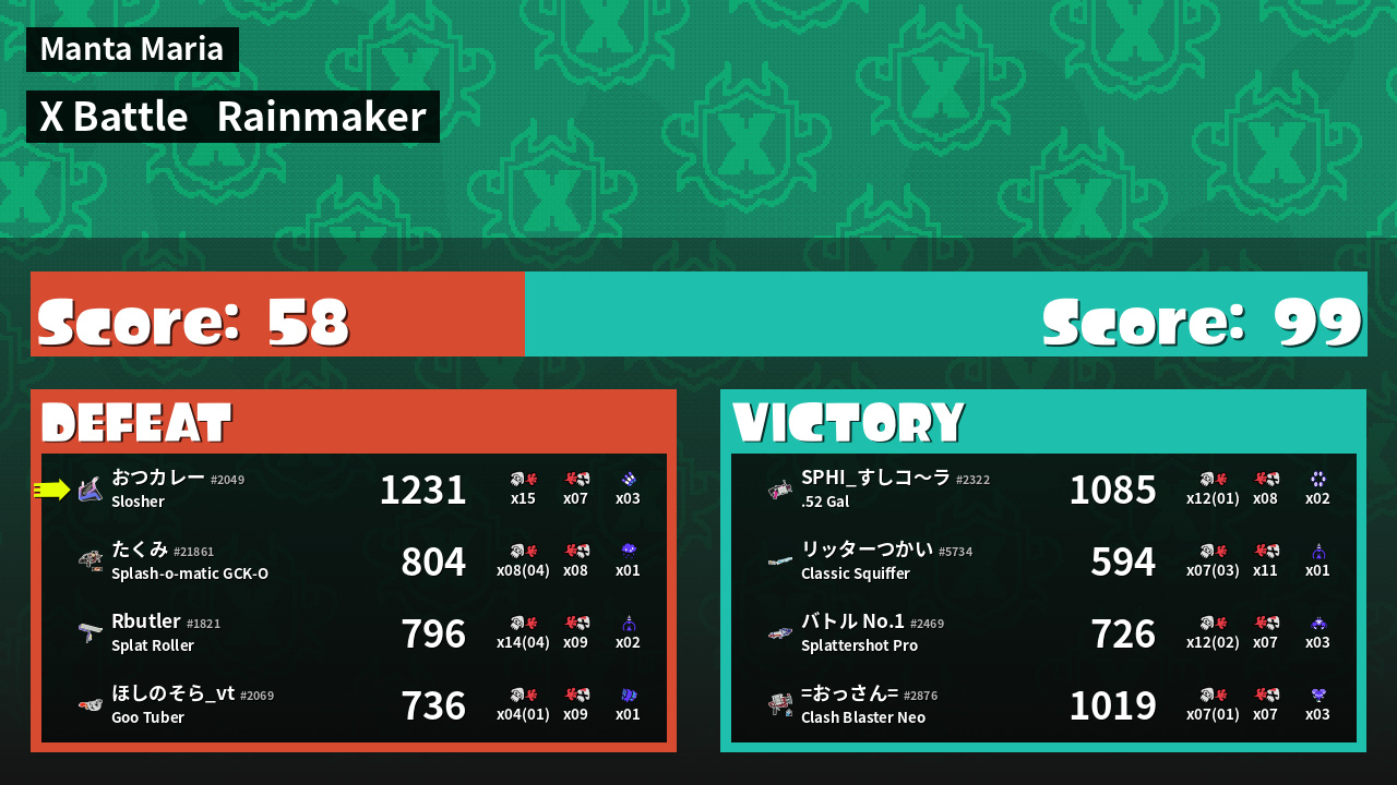 | Weapon | Slosher ( Splat Bomb / Triple Inkstrike) |