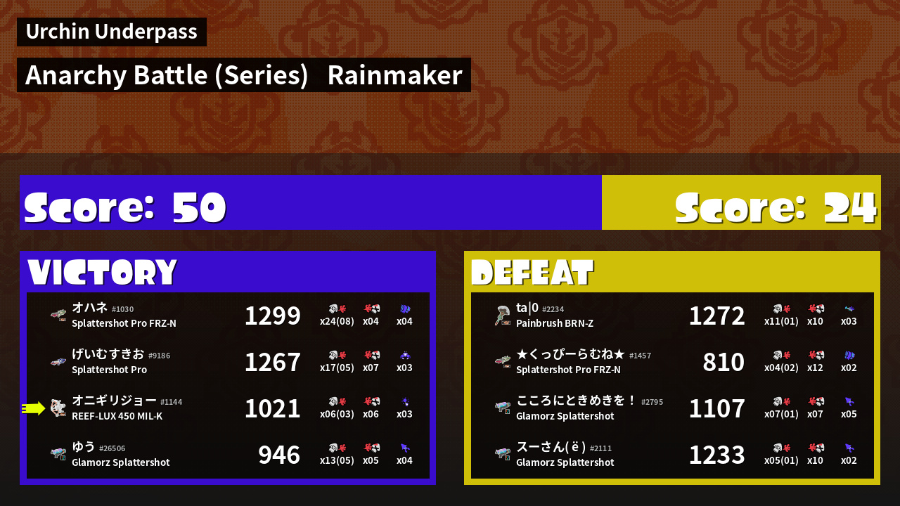| Mode | Rainmaker - Anarchy Battle (Series) |
