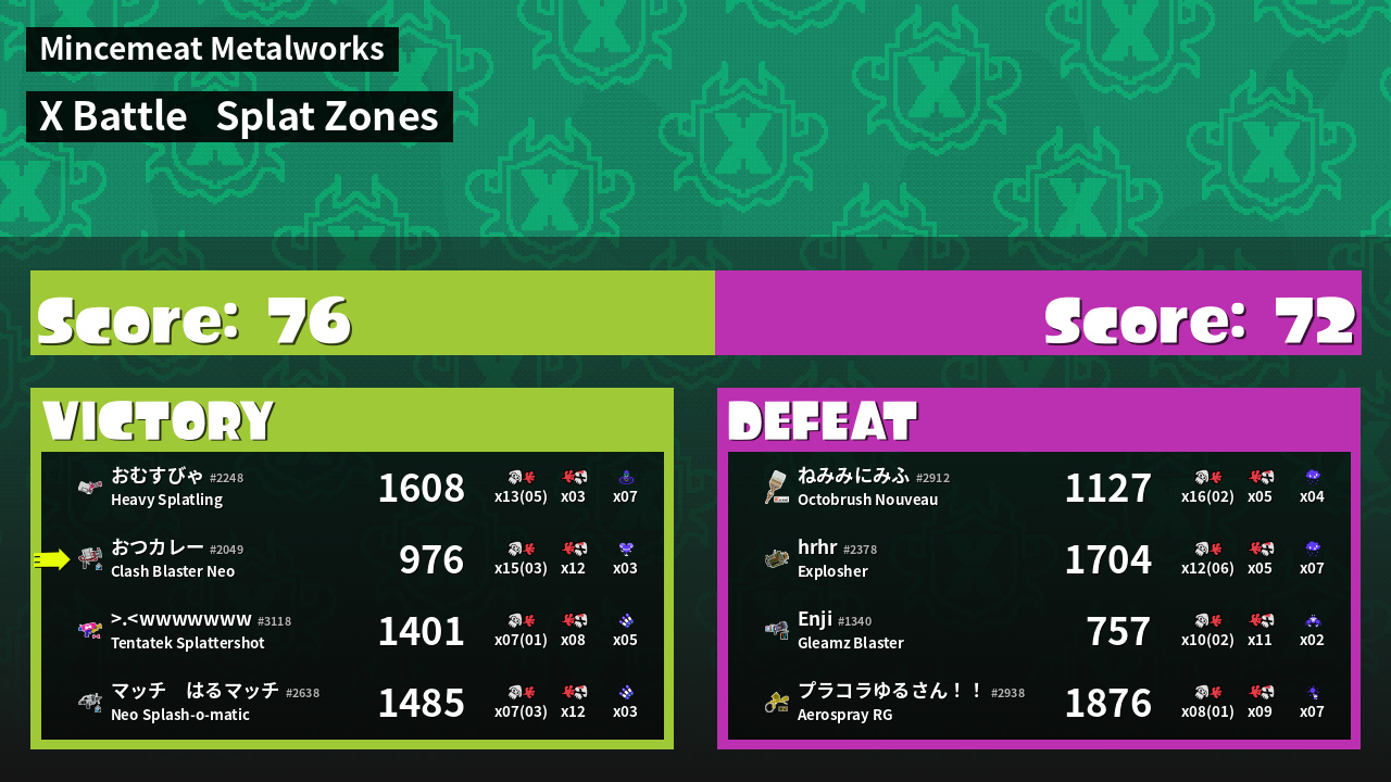 | Mode | Splat Zones - X Battle |