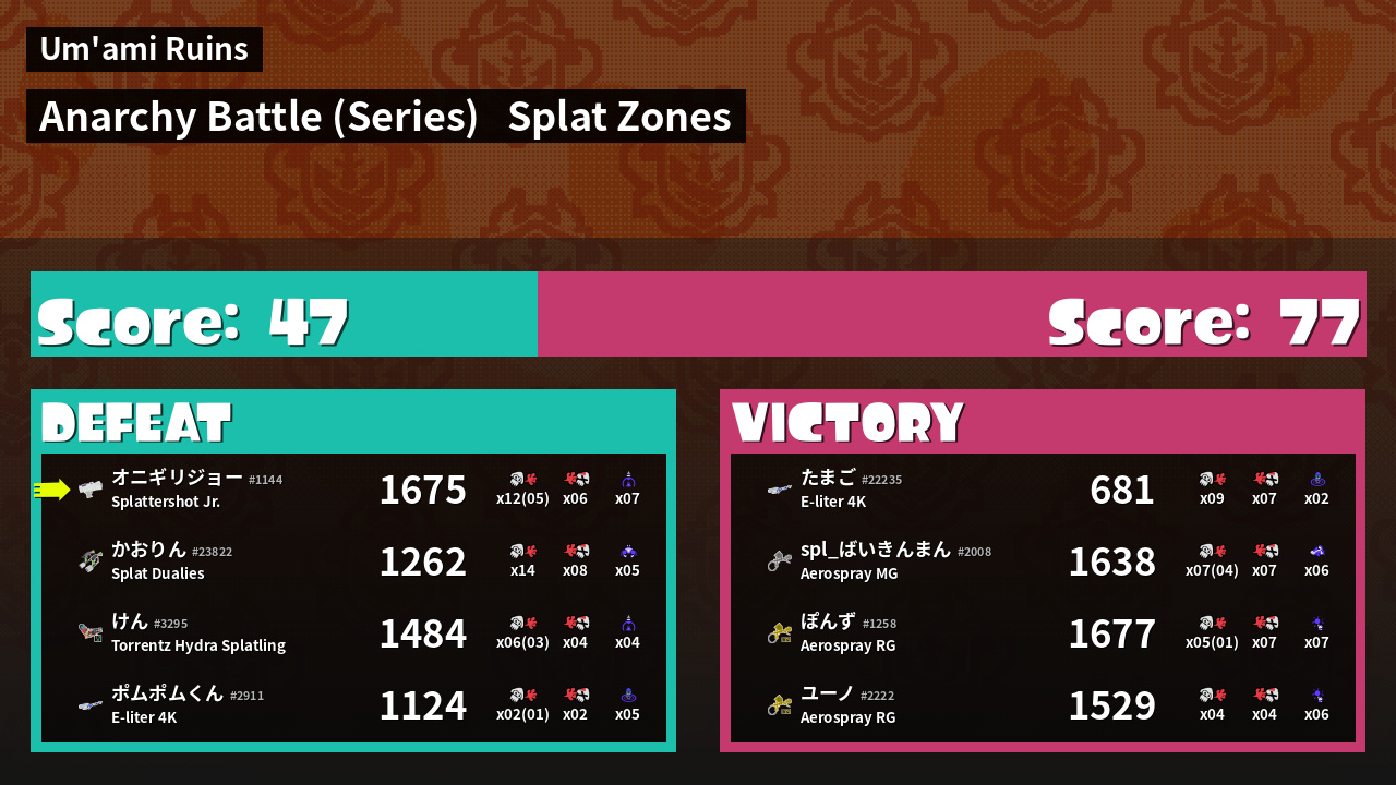 Results of まこりーた's Battle