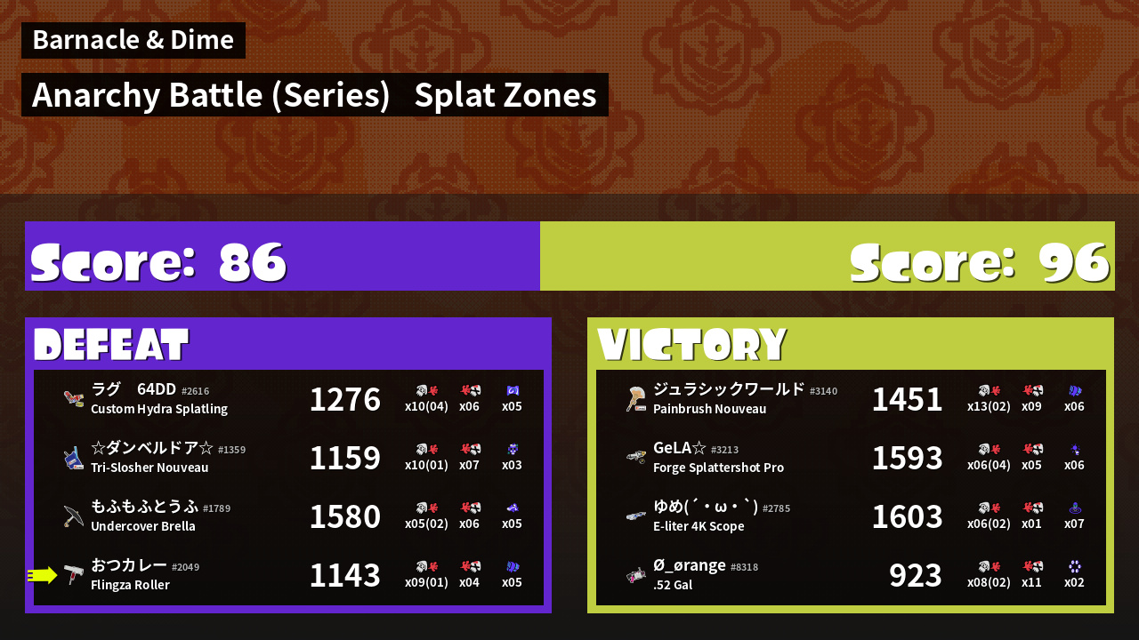 | Mode | Splat Zones - Anarchy Battle (Series) |