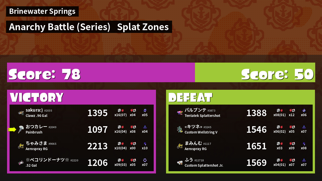 Results of まこりーた's Battle