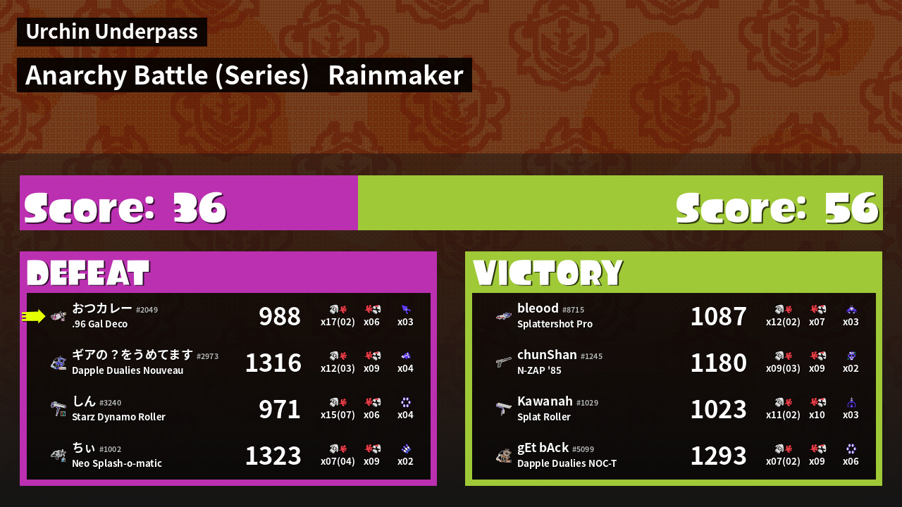 Results of まこりーた's Battle