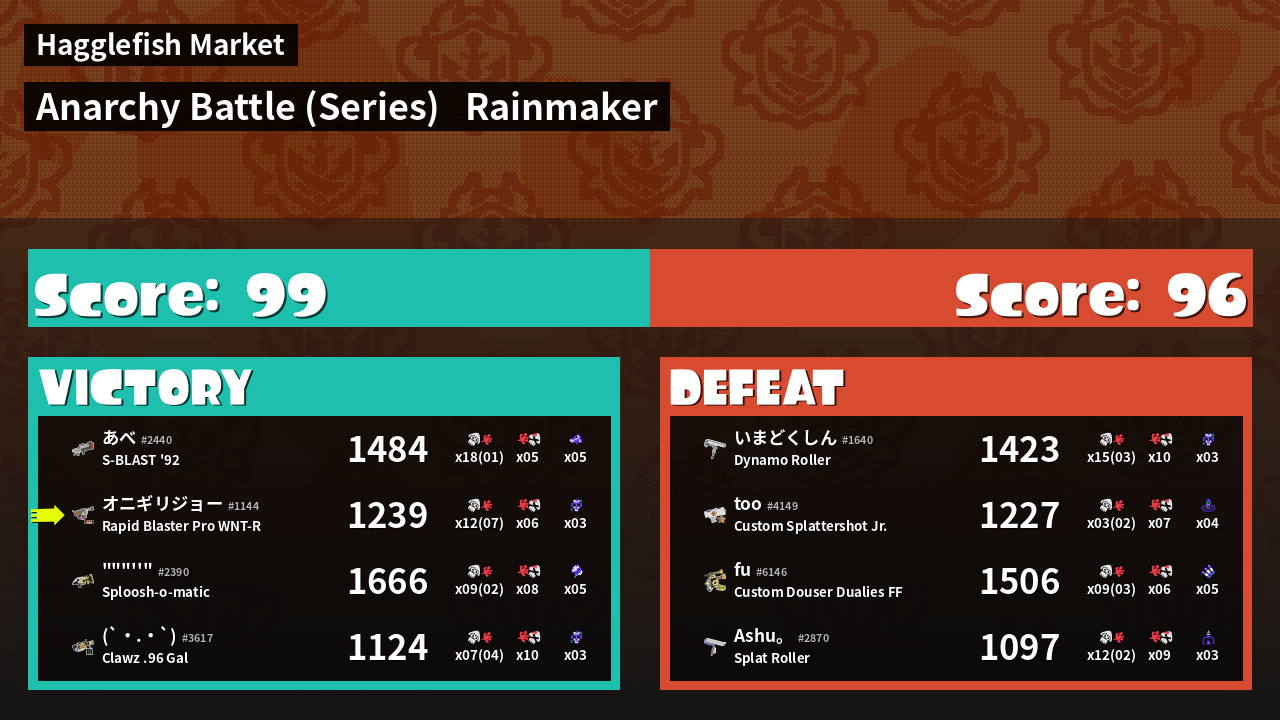 Results of まこりーた's Battle
