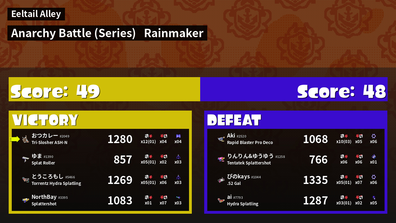 | Mode | Rainmaker - Anarchy Battle (Series) |