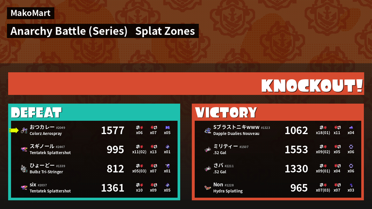 Results of まこりーた's Battle