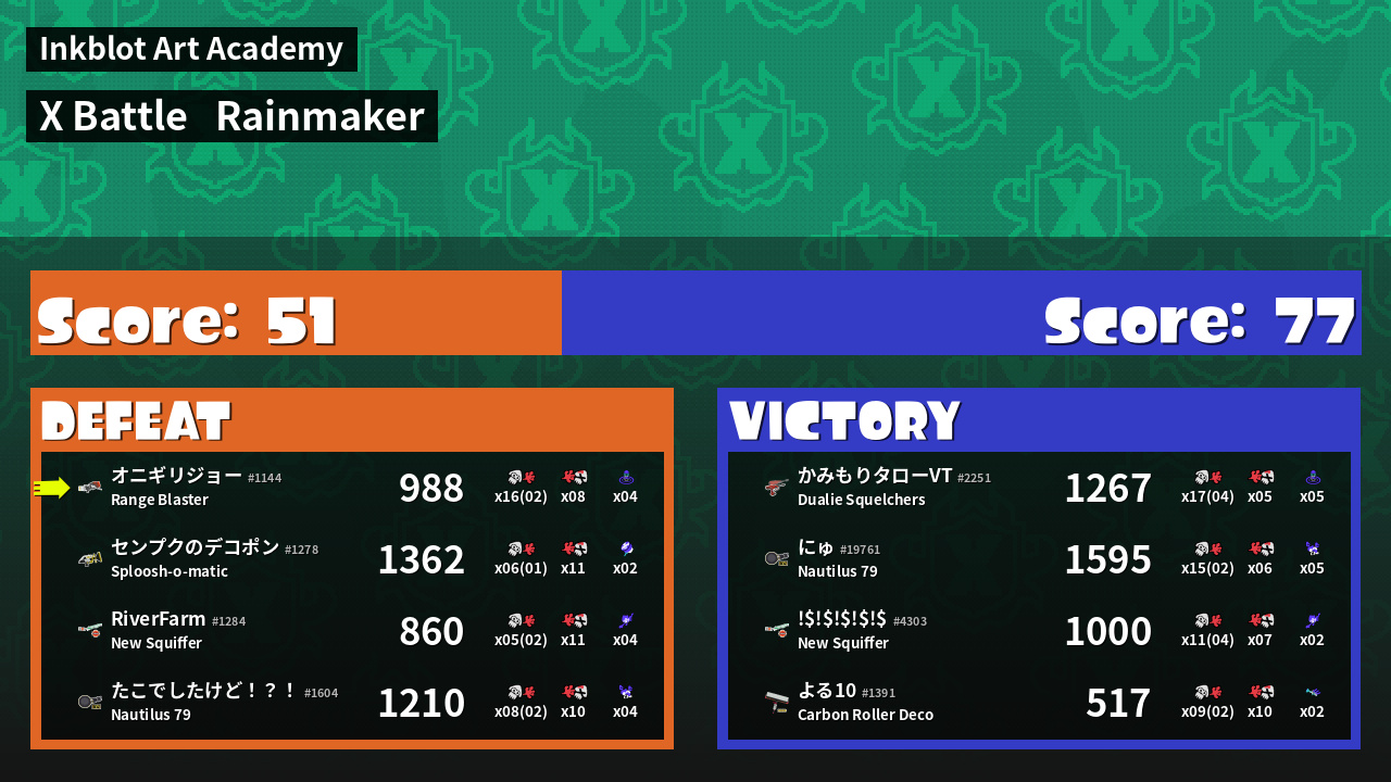 | Mode | Rainmaker - X Battle | ||