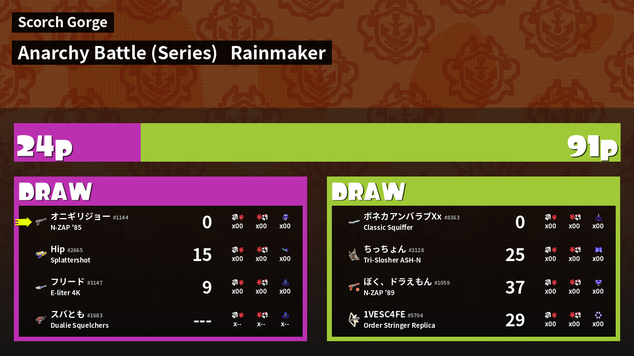 Results of まこりーた's Battle