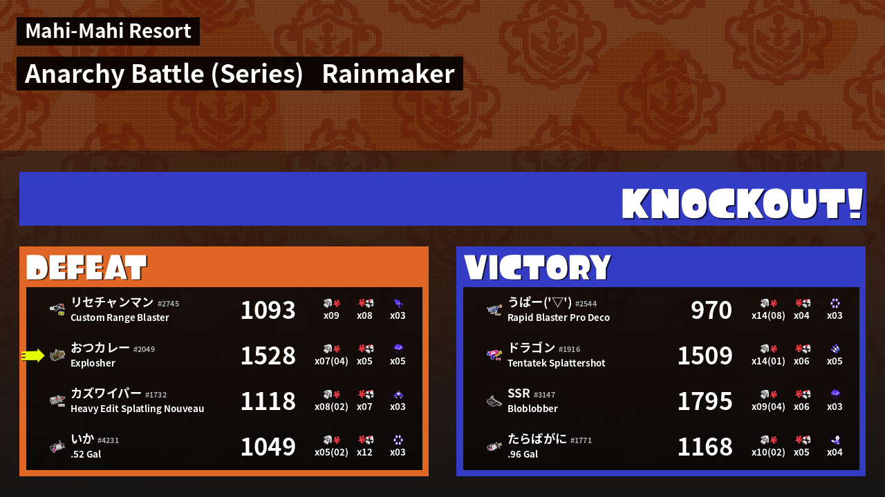 | Mode | Rainmaker - Anarchy Battle (Series) |