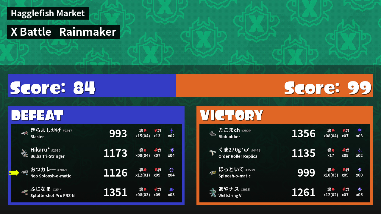 | Mode | Rainmaker - X Battle |
