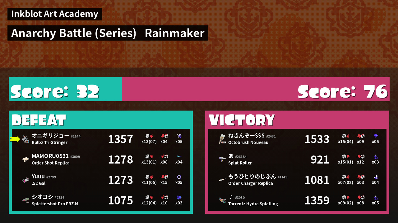 Results of まこりーた's Battle