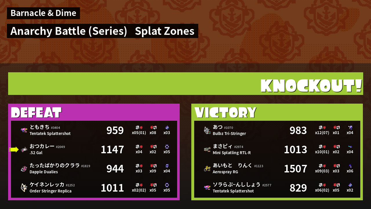 | Mode | Splat Zones - Anarchy Battle (Series) |