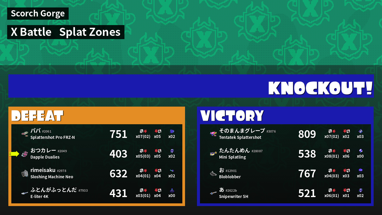 | Medals | #1 Super Jump Spot #1 Splat Assister #1 Tacticooler User |