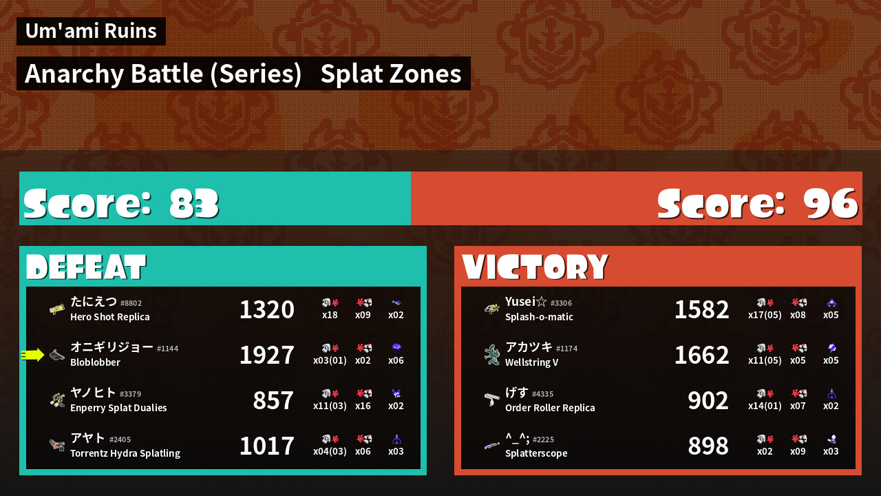 | Mode | Splat Zones - Anarchy Battle (Series) |