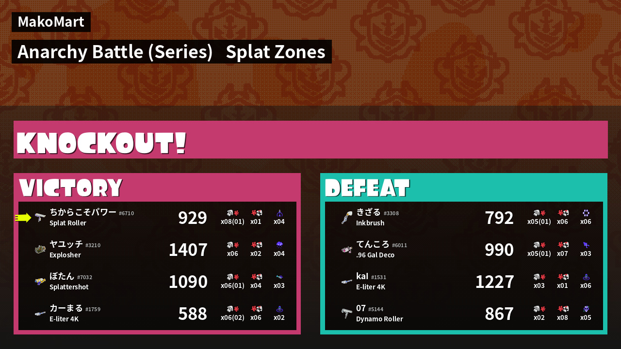 | Mode | Splat Zones - Anarchy Battle (Series) | ||
