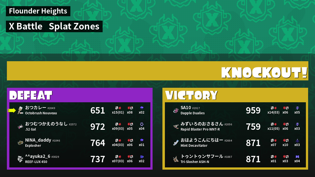 | Mode | Splat Zones - X Battle |