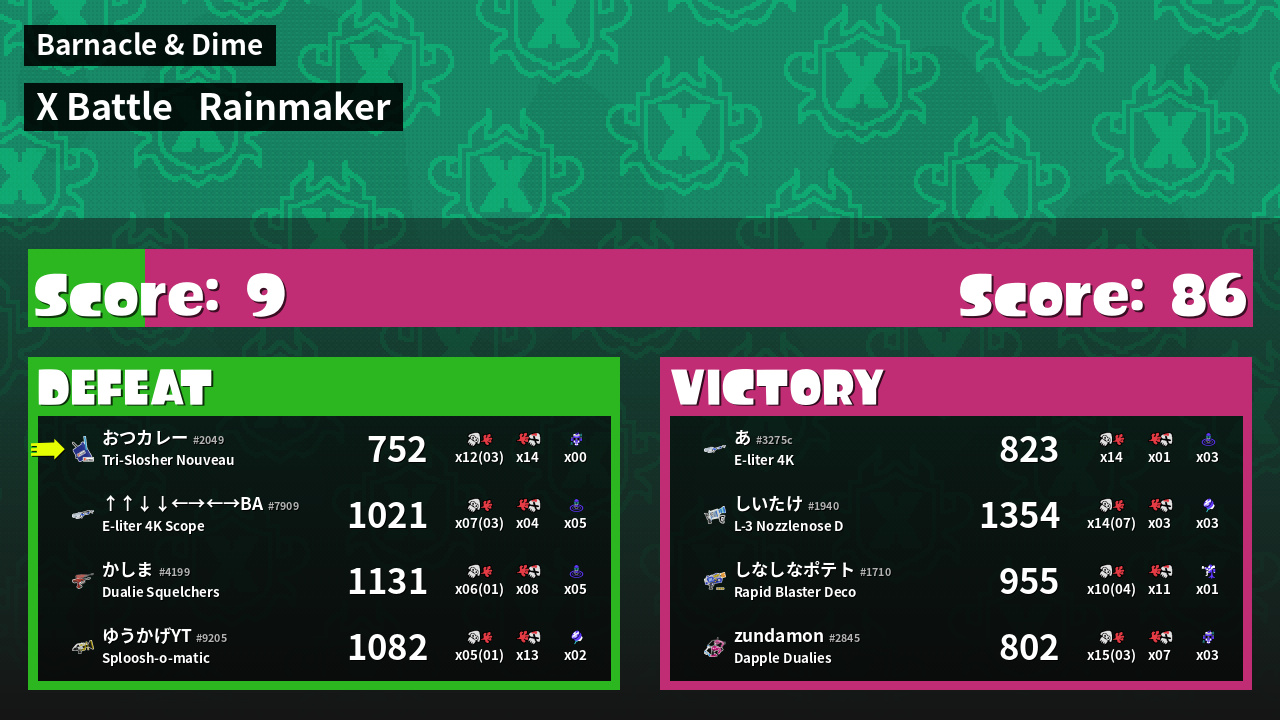 | Weapon | Tri-Slosher Nouveau ( Fizzy Bomb / Tacticooler) |