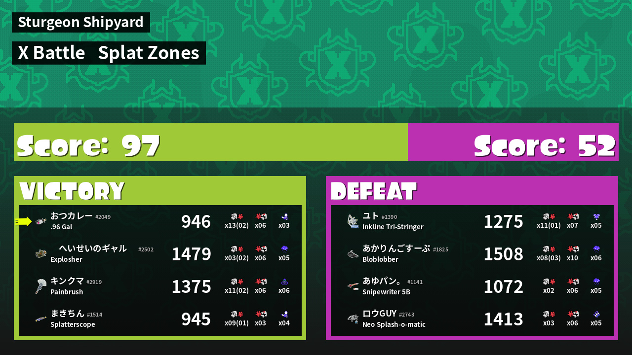 | Mode | Splat Zones - X Battle |