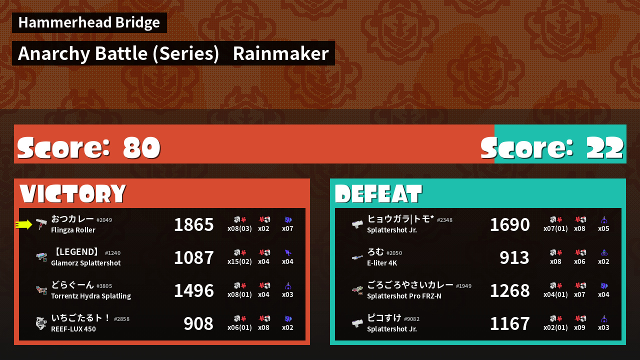 | Mode | Rainmaker - Anarchy Battle (Series) |