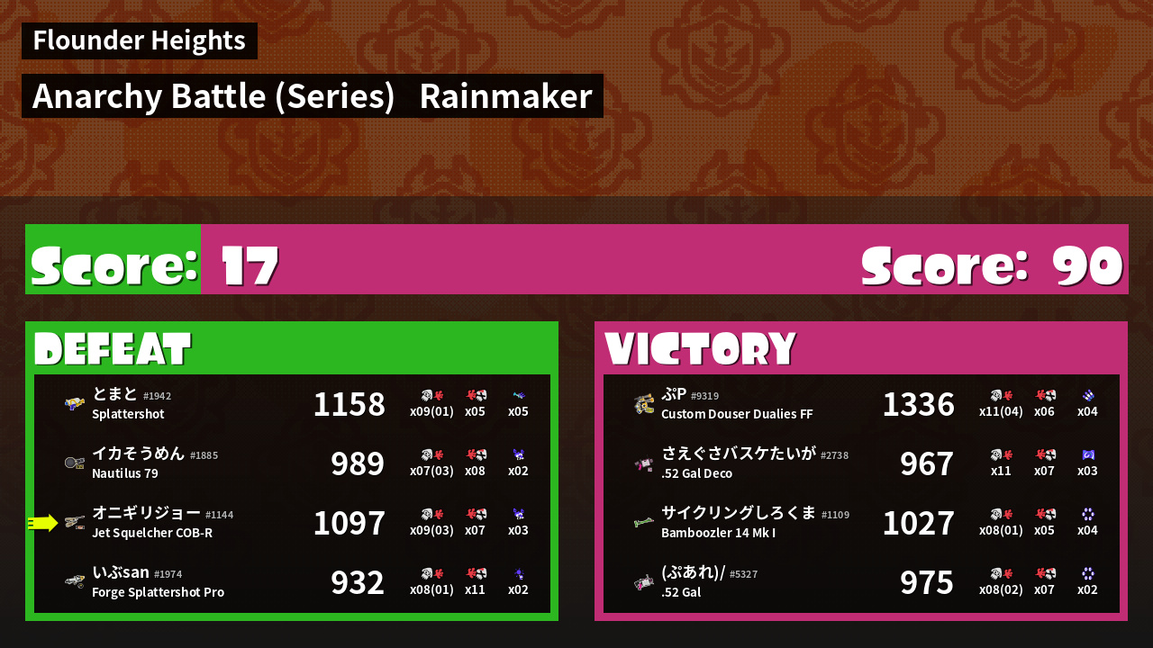 | Mode | Rainmaker - Anarchy Battle (Series) |