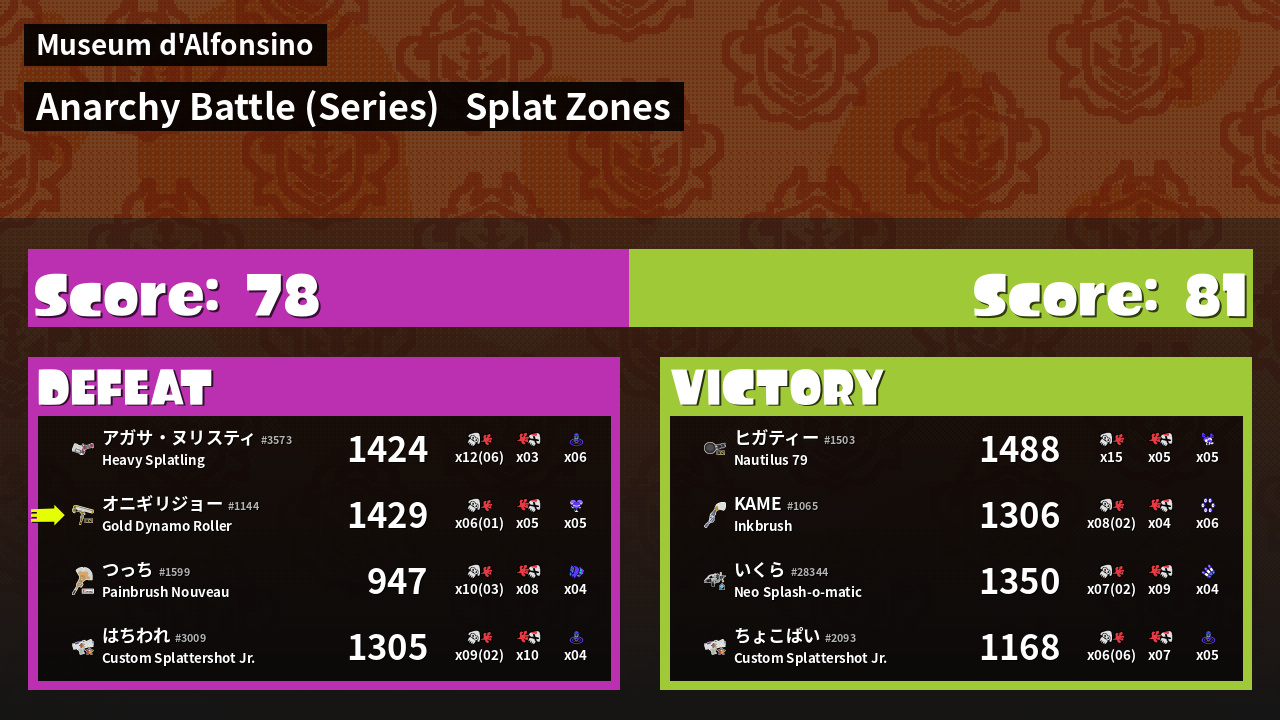 Name | Weapon | Inked | ![]() |