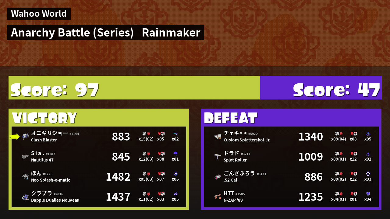 | Mode | Rainmaker - Anarchy Battle (Series) | ||