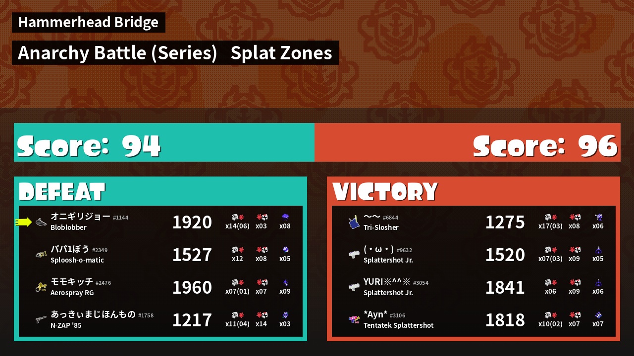| Mode | Splat Zones - Anarchy Battle (Series) | ||