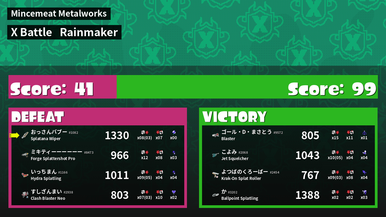 | Weapon | Splatana Wiper ( Torpedo / Ultra Stamp) | ||