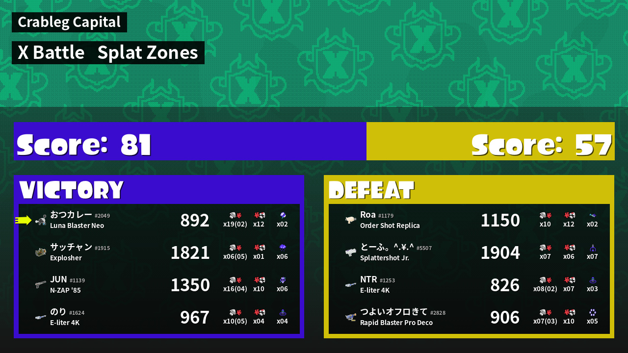 | Medals |  #1 Overall Splatter  #1 Splat Zone Guard  #1 Enemy Splatter |