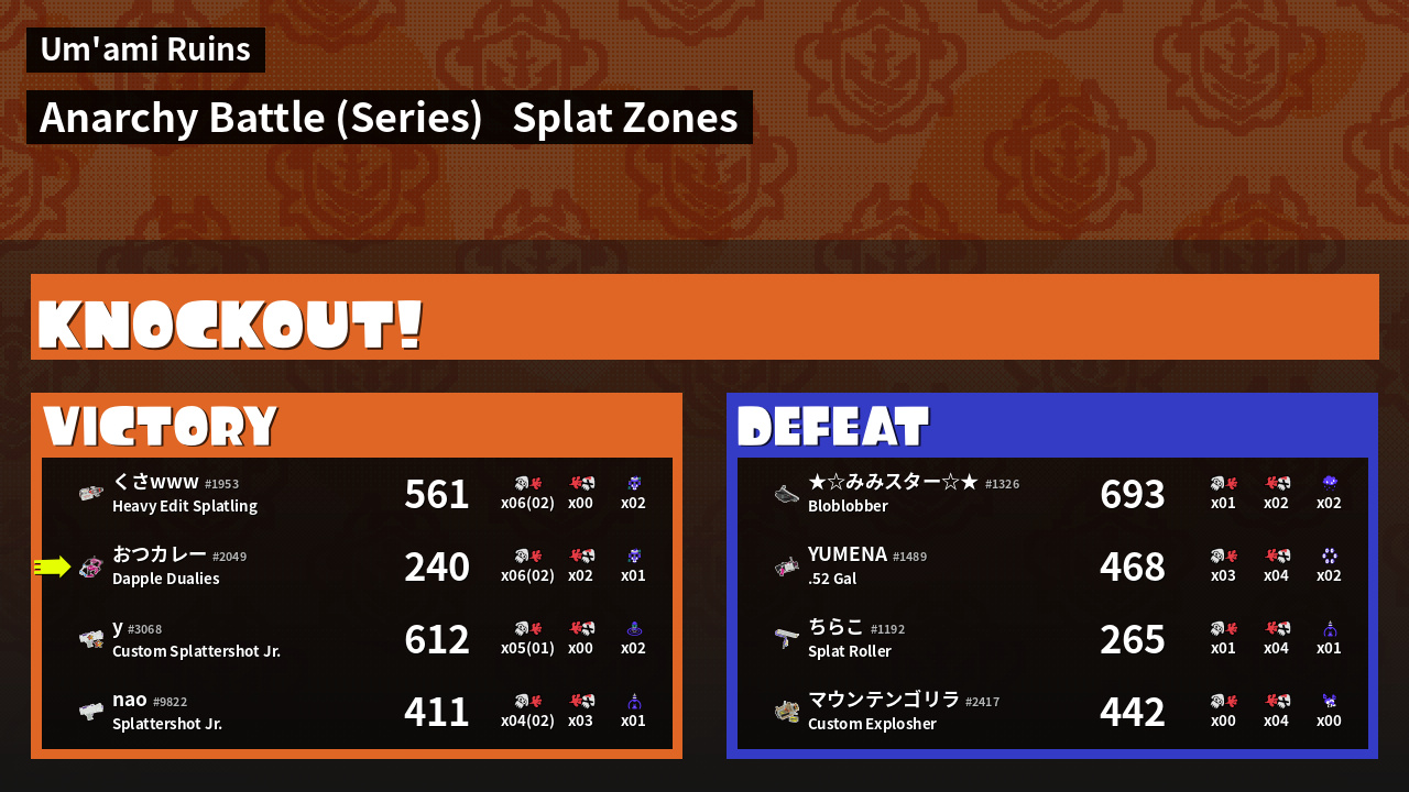 | Mode | Splat Zones - Anarchy Battle (Series) |