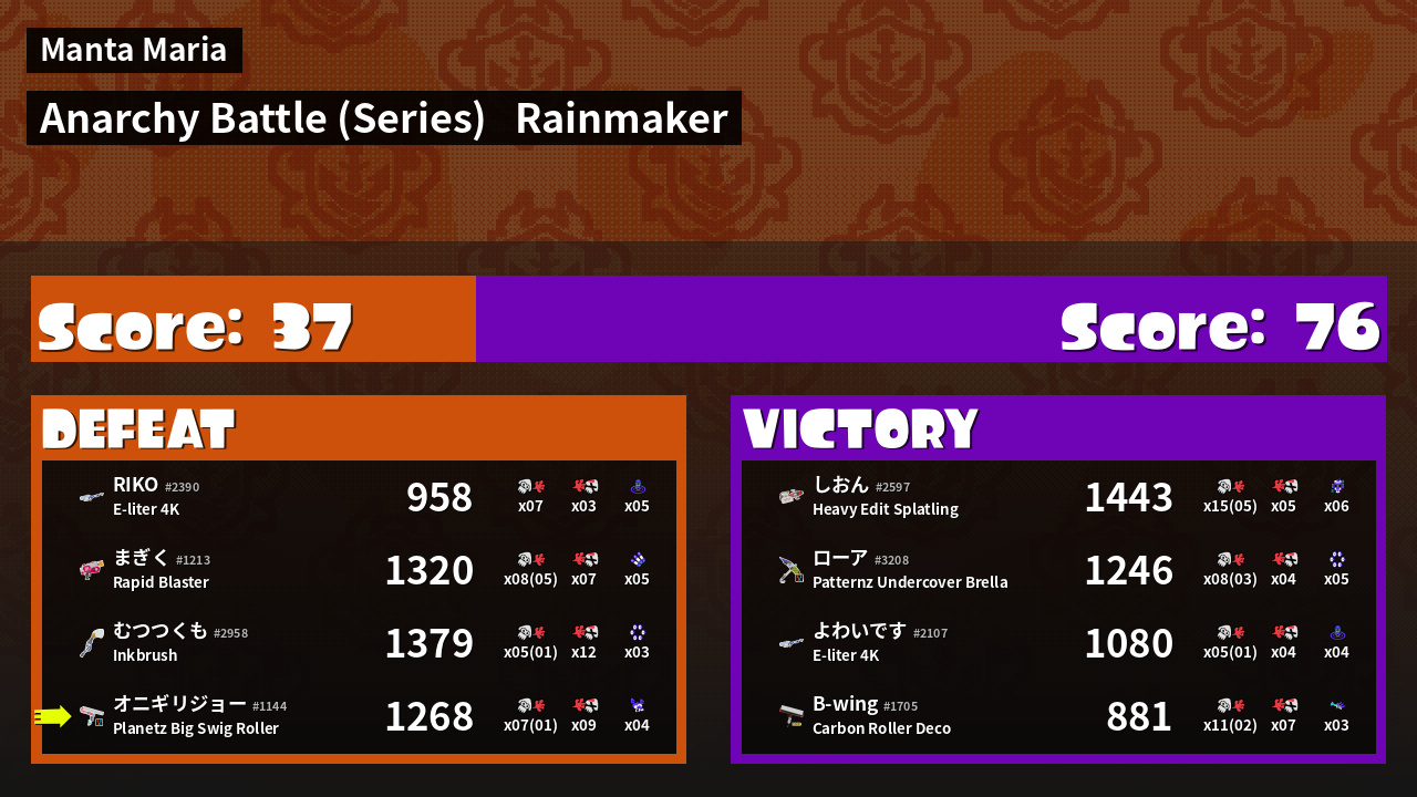 Results of まこりーた's Battle