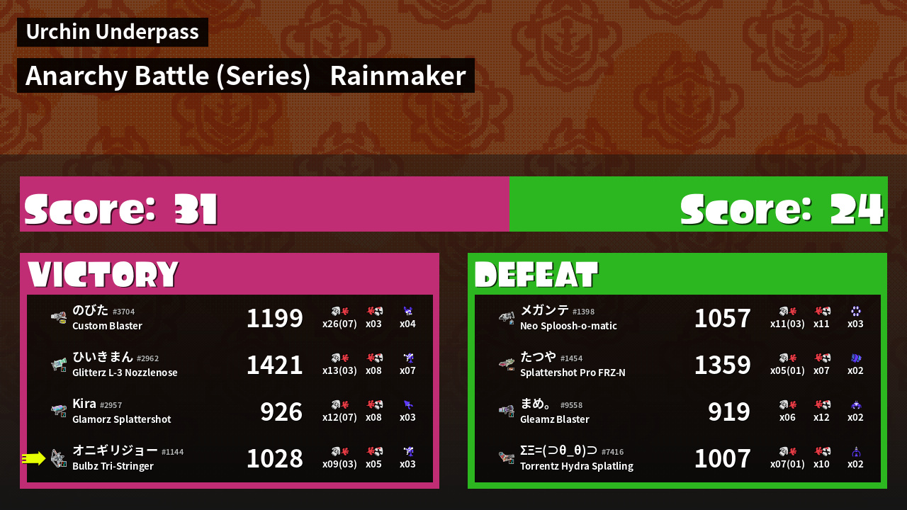 | Mode | Rainmaker - Anarchy Battle (Series) |