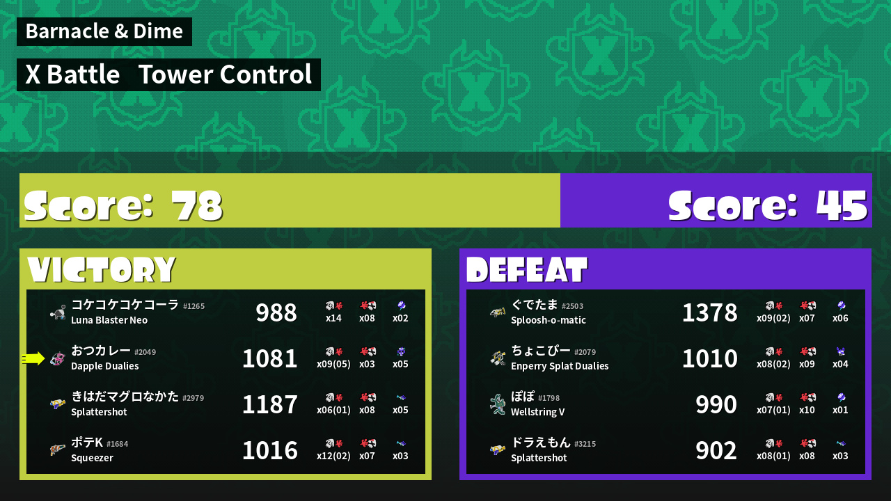 | Medals | #1 Super Jump Spot #1 Splat Assister #1 Tower Stopper |