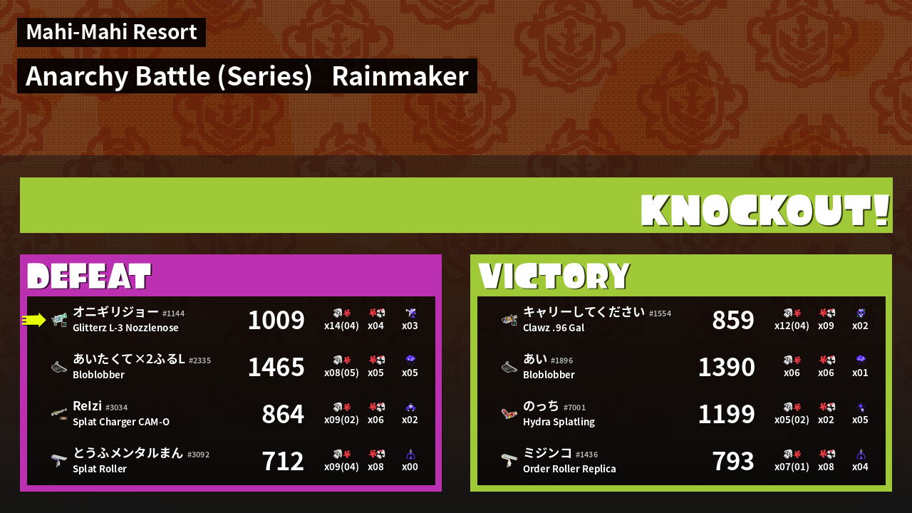 Results of まこりーた's Battle
