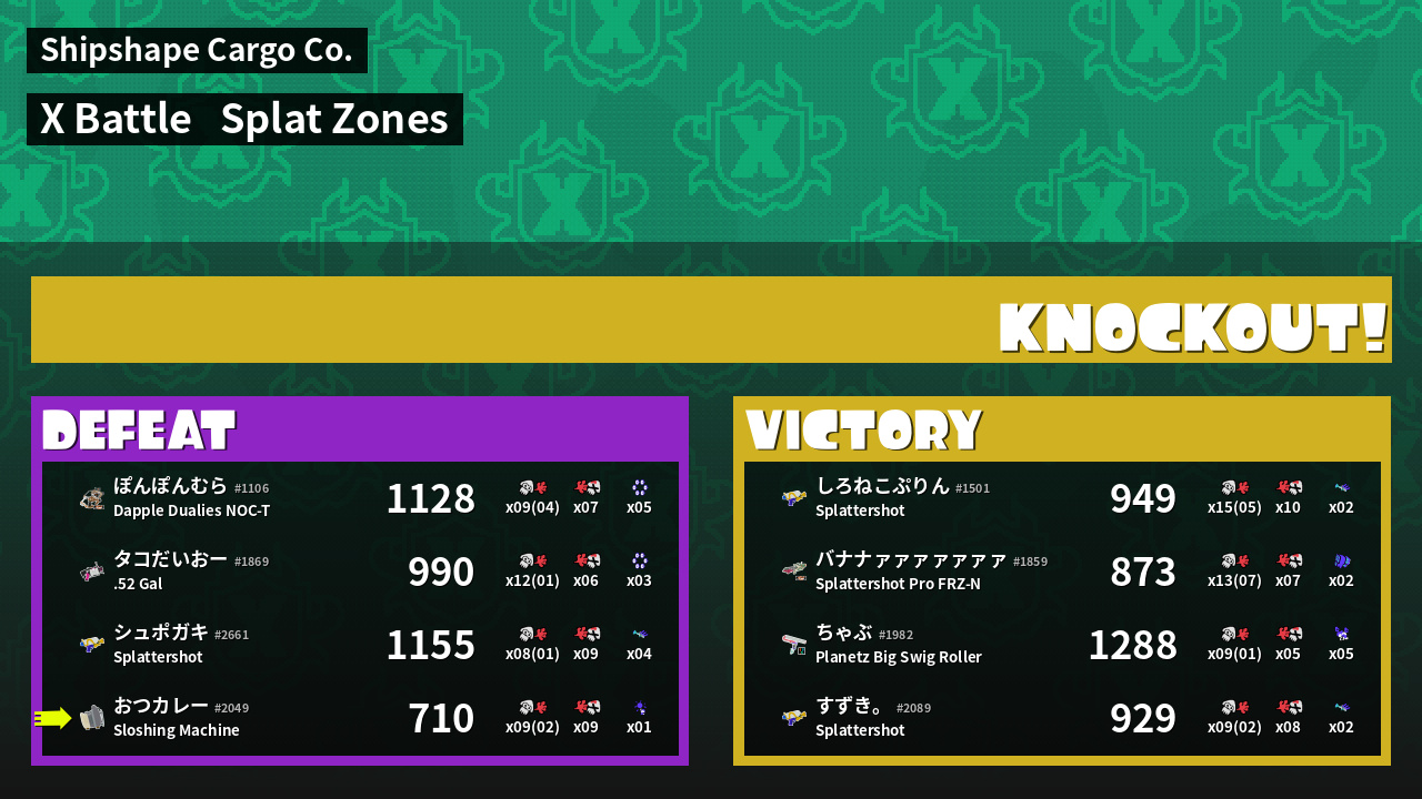 | Medals | #2 Overall Splatter #2 Splat Zone Guard #2 Enemy Splatter |