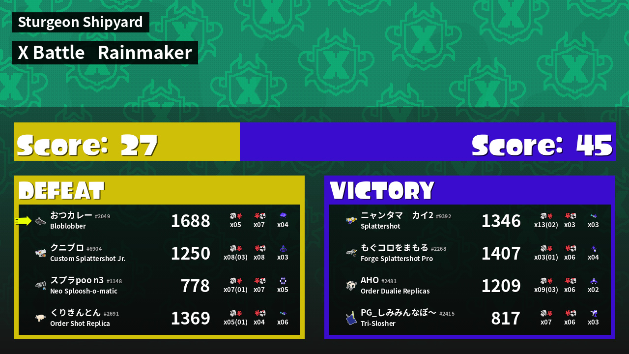 | Mode | Rainmaker - X Battle |