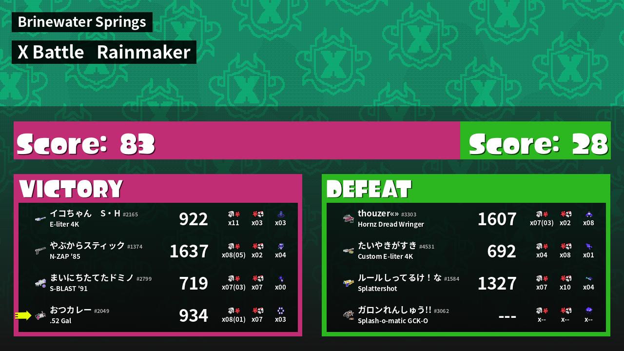 | Weapon | .52 Gal ( Splash Wall / Killer Wail 5.1) |