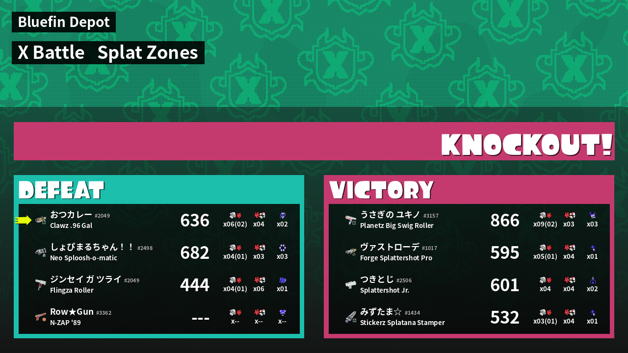 | Medals | #1 Overall Splatter #1 Splat Zone Inker #1 Enemy Splatter |